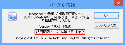 moopener - 無線LAN接続切替ツールを試用期限のない正式版にする、アクティベーションの方法を解説します。 | |||||